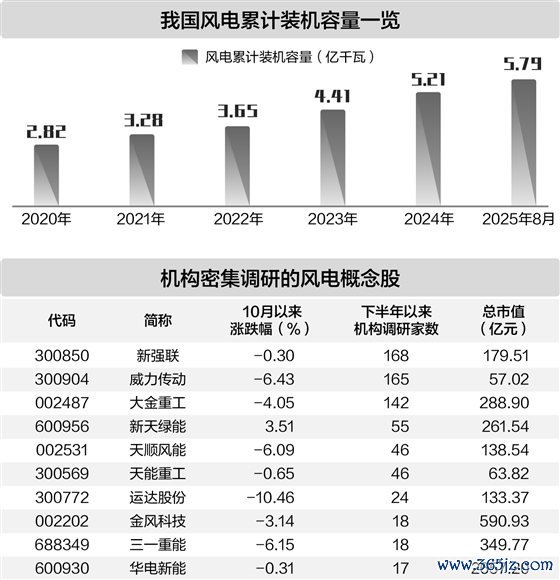 风电行业获机构高度存眷,下半年以来,共有13只风电成见股赢得10家及以上机构调研,占比卓越总和的三成,其中新强联、威力传动、大金重工(002487)的机构调研流派在100家及以上。